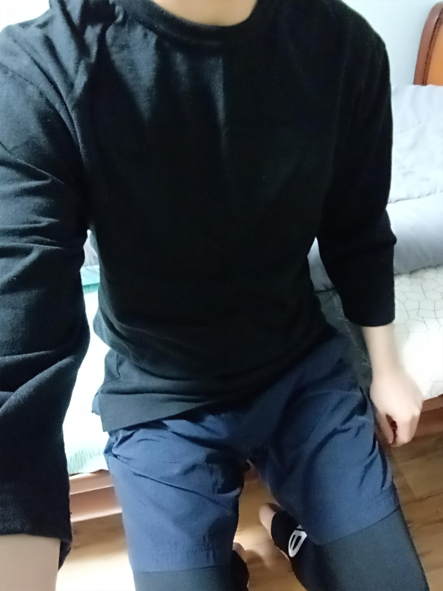 무신사 스탠다드 3/4 슬리브 크루 넥 티셔츠 블랙 입니다