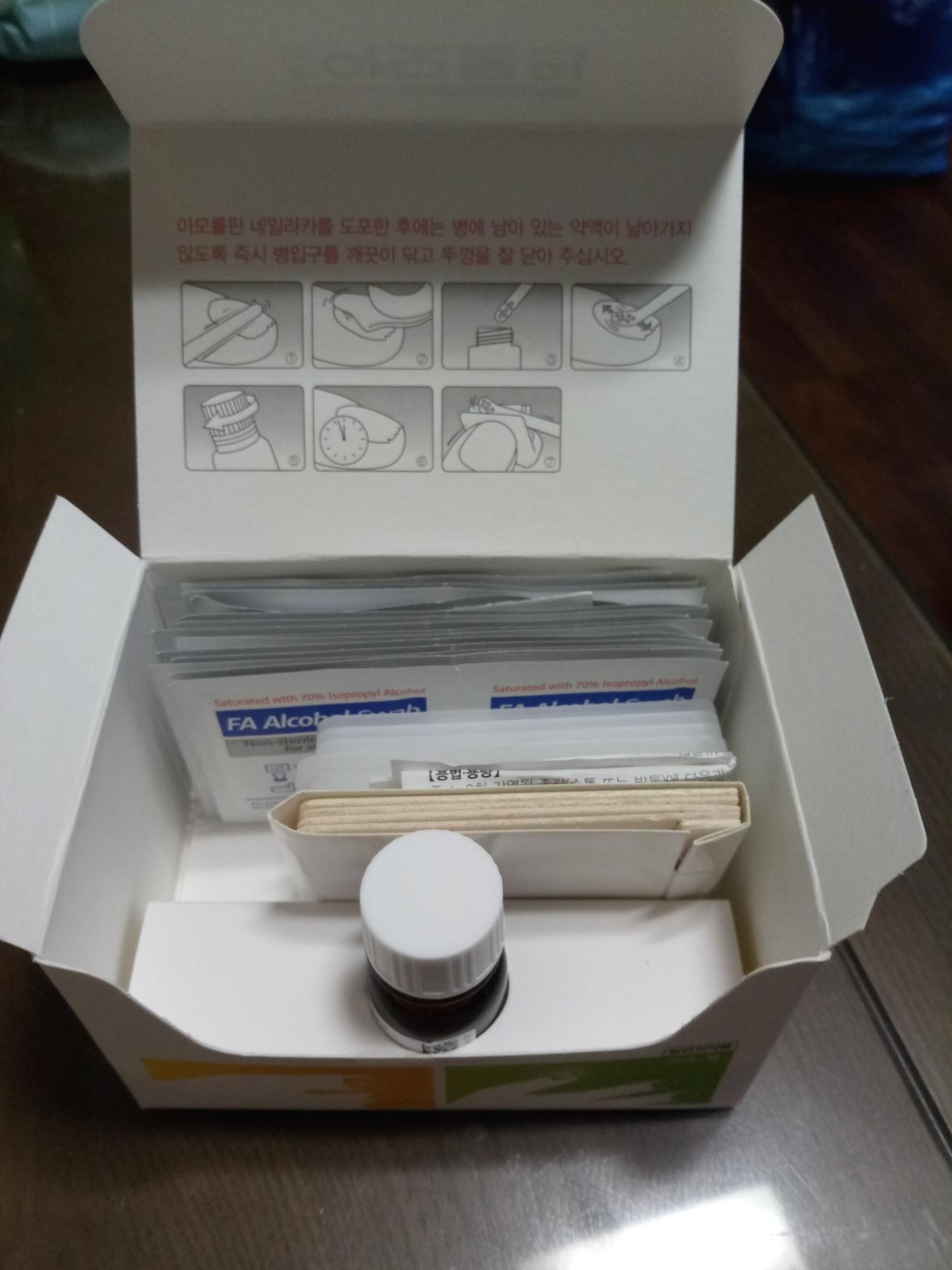 바르는 약 외에도 사포, 바르는 막대, 알코올 솜. 사용설명서