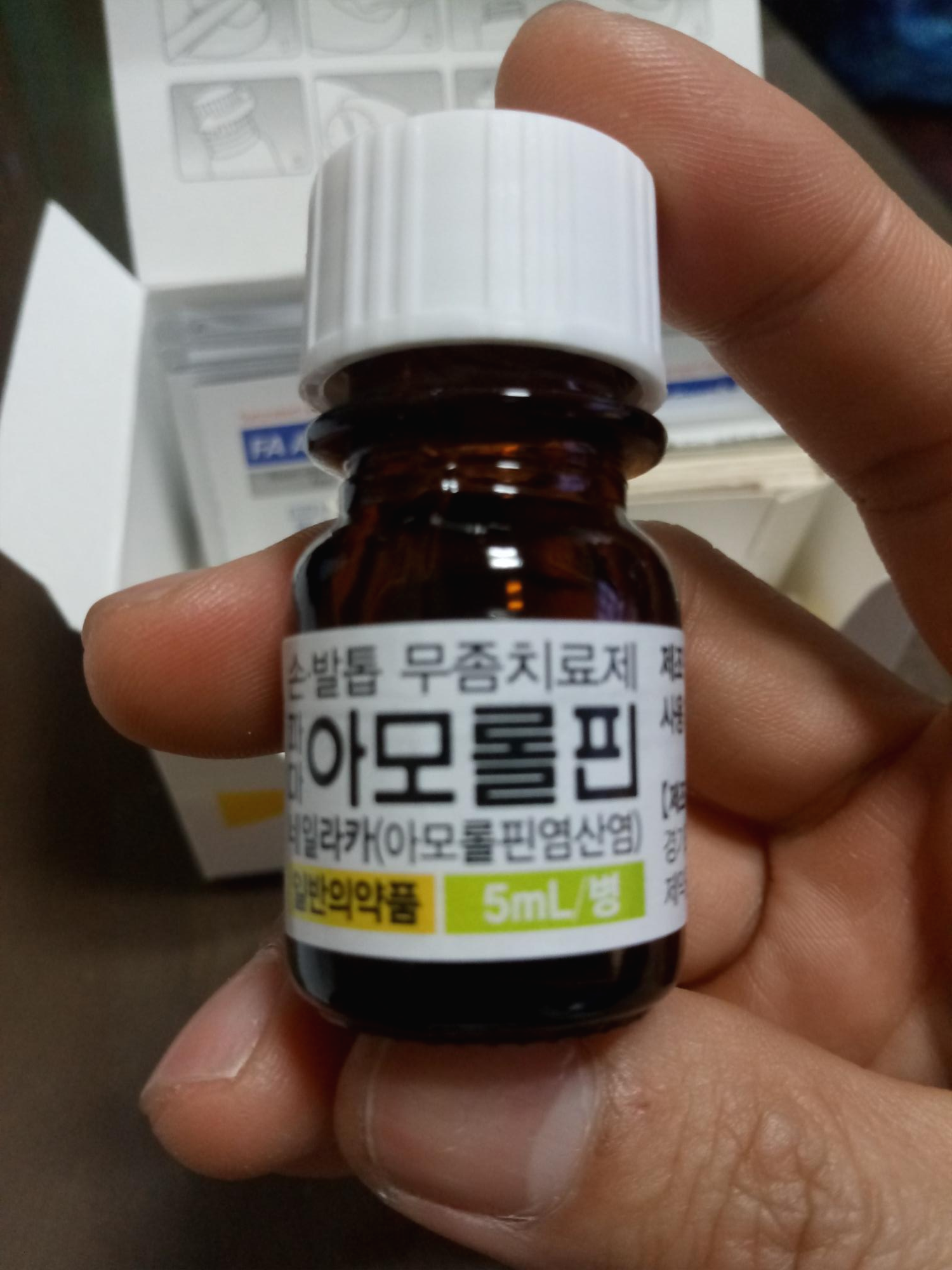 겉을 깎아내니 안에는 뽀얀 발톱이 있었다. 감염부위에 약을 바를때