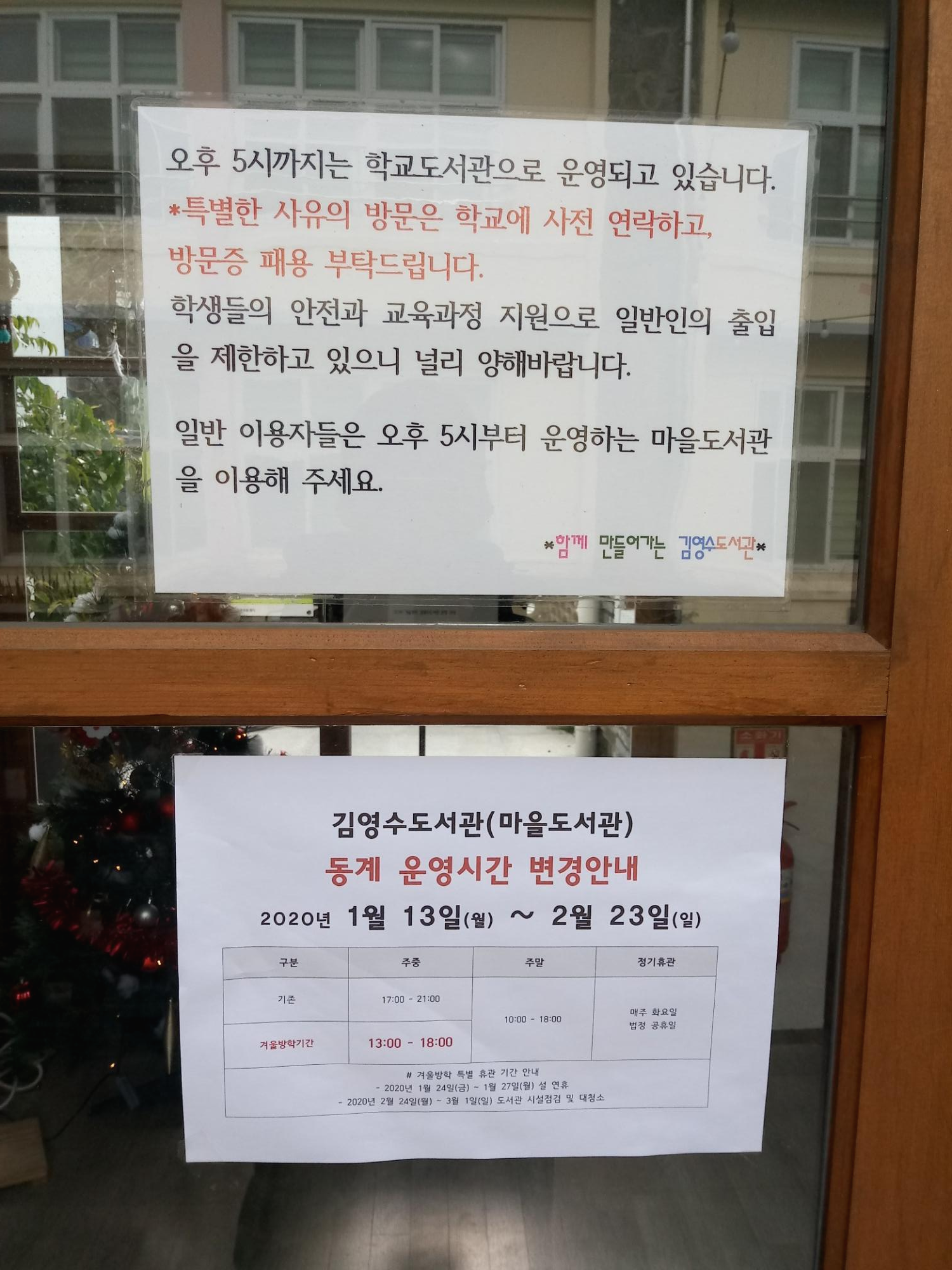 위에 안내문말고 아래 안내문을 보시면 방학기간에는 마을도서관으로 13~18시까지 이용가능 합니다.
