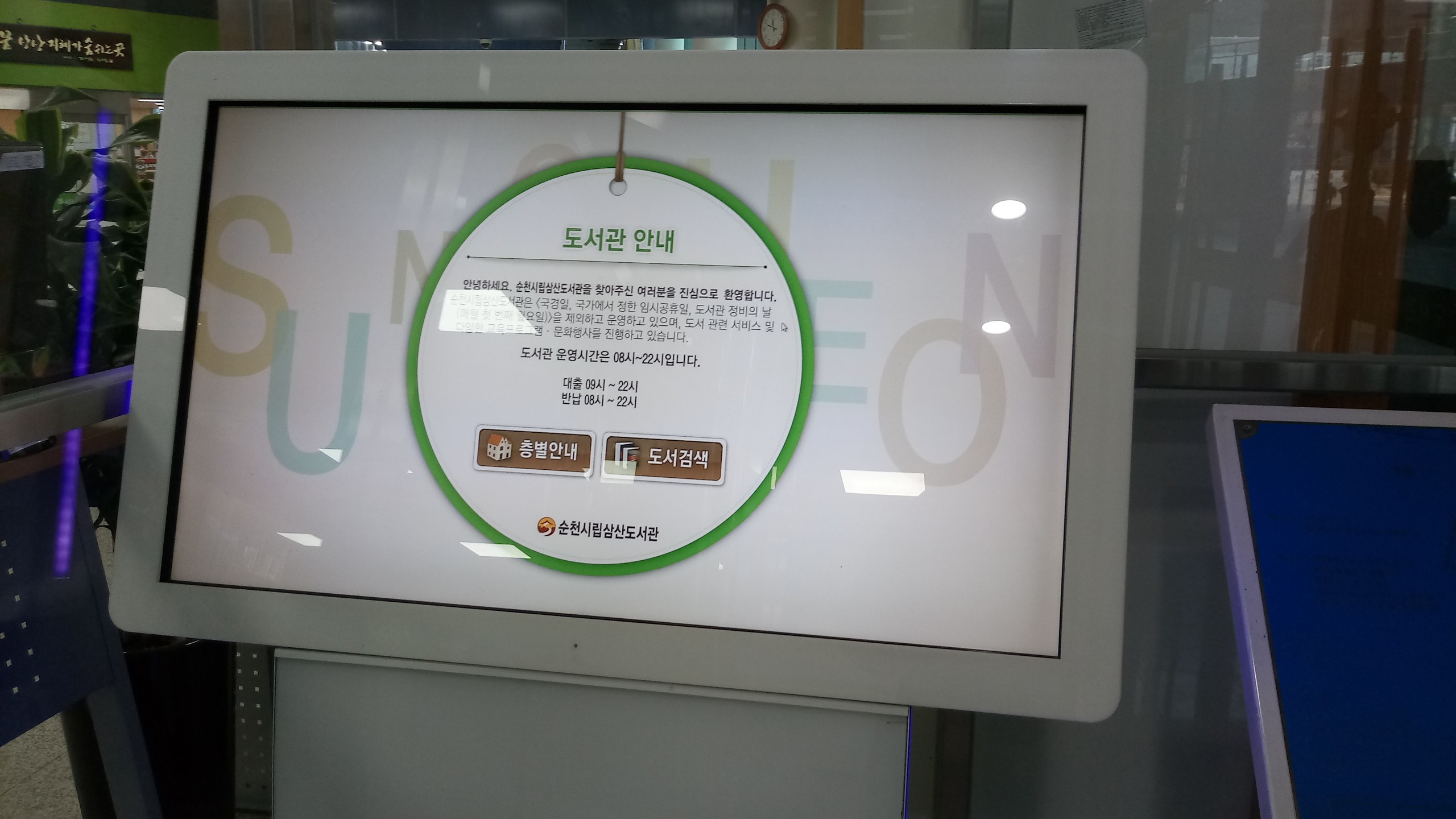 삼산도서관은 순천시 문화건강센터 안에 위치해 있습니다.